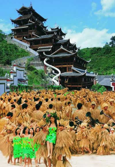 “茅古斯與擺手舞”是土家族紀念祖先開拓荒野、捕魚狩獵等創(chuàng)世業(yè)績的一種原始戲劇形式,被中外的戲劇界稱為是人類戲劇文化的“活化石”,茅古斯是土家族最古老的舞蹈,也是傳授狩獵技藝的民間武術,體現土家族先民的生活情態(tài)。