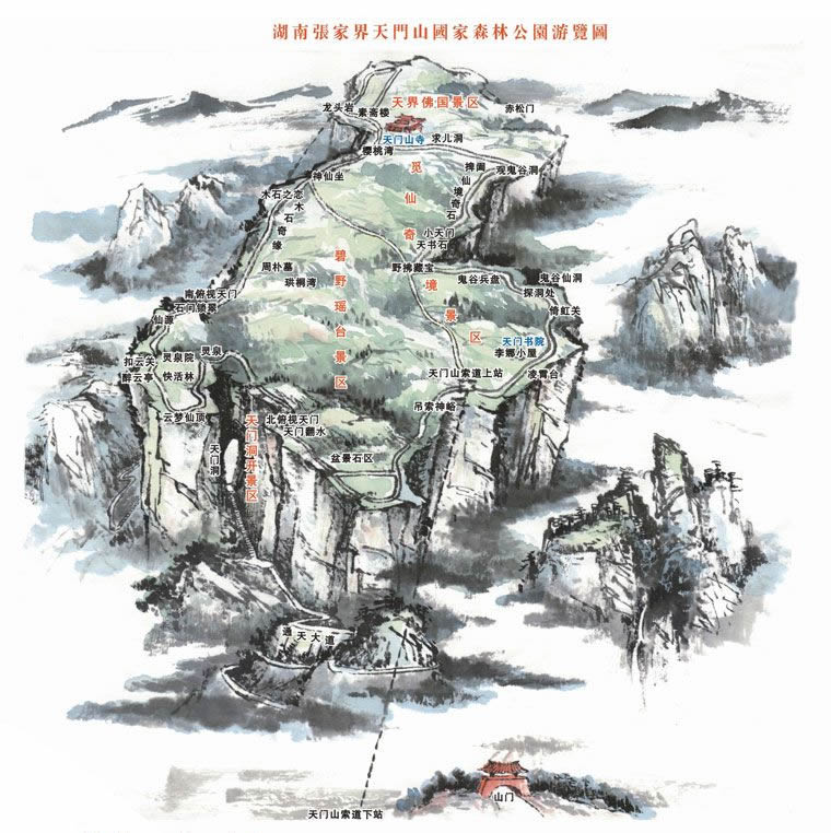 現(xiàn)在位置:張家界旅行社->交通指南->旅游地圖 -> 天門山國家森林公園游覽圖_天門山旅游圖