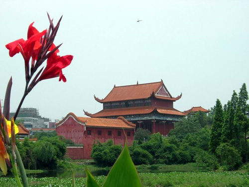 盤王是瑤族人民的始祖。瑤族人民每到一地都要建立盤王殿,以紀(jì)念先祖。江華瑤族進(jìn)入縣境后,曾立有數(shù)座盤王殿,但風(fēng)雨剝蝕,早已毀壞。后來根據(jù)瑤族人民的意愿,將原建于姑婆大山中的盤王殿遷建于縣城沱江鎮(zhèn)。遷建的盤王殿,坐落在風(fēng)景秀麗的平頭巖公園內(nèi),地勢(shì)依序?yàn)榈汀⒅、高三?jí),與平頭巖相對(duì)應(yīng)。
