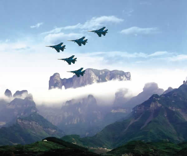 世界特技飛行大師駕機(jī)穿越天門(mén)洞