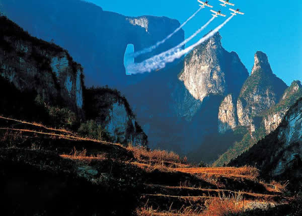 1700多年來(lái),這一道奇絕天下的勝景吸引著無(wú)數(shù)的探訪(fǎng)者趨之若鶩。特別是在1999年,世界特技飛行大師駕機(jī)穿越天門(mén)洞,在全球引發(fā)了轟動(dòng)效應(yīng),收看現(xiàn)場(chǎng)直播的觀眾達(dá)到8億之多。