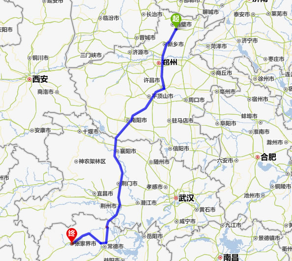 鶴壁去張家界自駕車(chē)自助游線路圖全程高速):