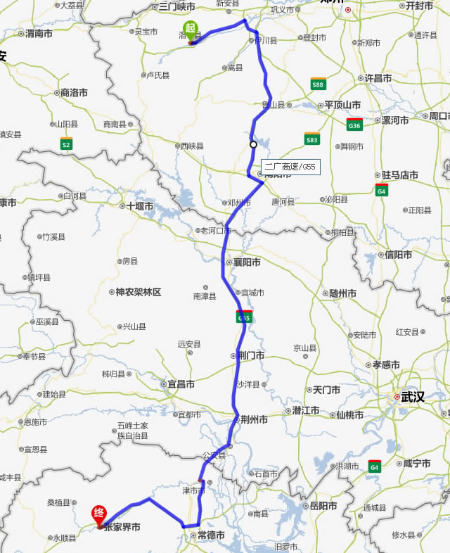現(xiàn)在位置:張家界旅行社->交通指南->自駕車路線 -> 洛寧到張家界旅游自駕車線路,洛寧去張家界自己開車要多長時間,有多少公里