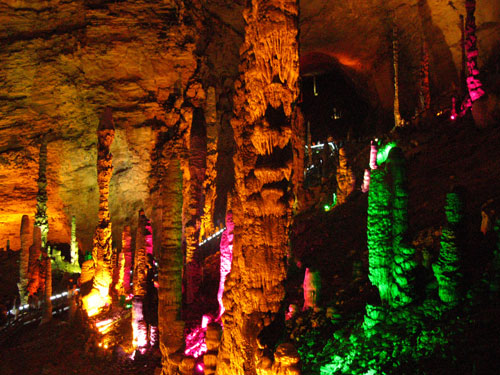 下 午: 游覽地下明珠——【黃龍洞景區(qū)】(門票已含,游覽時約2.5小時):黃龍洞享有“世界溶洞全能冠軍”之美譽,2005年被評選為“中國最美的旅游溶洞”,洞中燈火闌珊、石筍林立,猶如一株株古木錯節(jié)盤根、洞中有洞、洞中有河、無奇不有,真乃名副其實的“地下魔宮”,洞中還有投保一億元的石筍定海神針、響水河、龍王聚會廳、天仙水、天柱街等著名景點。